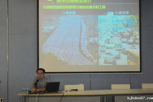 首先,张博士对交通规划建模中宏观、中观以及微观三个不同角度的建模方法和应用进行了简述;接着以宏观建模为主,对建模的流程和步骤进行了重点讲解。期间,结合上海市第四次、第五次交通大调查的实际编制情况,对模型结构设计、交通调查方案以及后期的模型校核等步骤进行了讲解。为我院师生深入了解交通规划建模领域的知识起到了重要的作用。