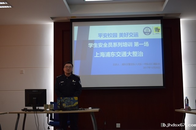 2017年12月20日,kaiyun体育手机版登陆官网官方版下载举行了主题为“平安校园、美好交运”的学生安全员授聘仪式和第一场安全员培训活动,出席此次活动的有浦东交警支队八大队一中队庄仁祺队长、开云体育最新链接网址党委副书记赵睿老师、辅导员徐晓毅、张伟磐老师以及全体学生安全员。