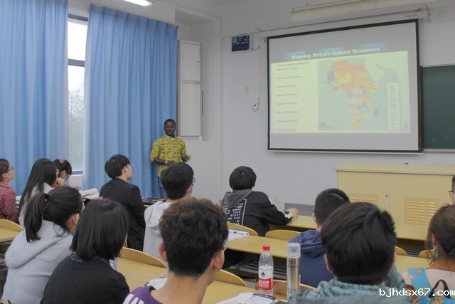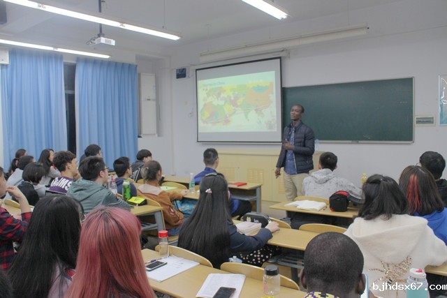 为促进同学们对非洲的认识,从多角度增加对非洲的了解,2019年4月15日,交运学院组织非洲留学生卓越和巴杰明在2A301教室与同学们进行了一次愉悦、欢快地分享交流活动。此次活动中,两位非洲留学生热情友好的向同学们介绍了有关非洲及他们国家的各方面内容,还与同学们就相关问题进行了互动交流。