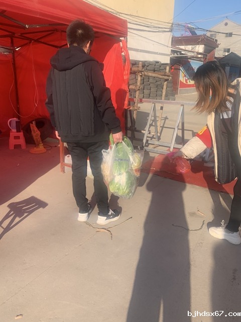 交规19级研究生党员李淑函为买菜归来村民消毒