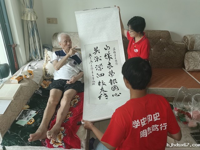 羽爱童行实践队指导老师赵睿带队寻访学校重庆办学历史、拜访100年岁的糜宏桢老校友