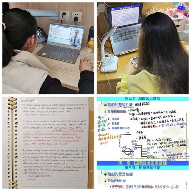 延迟开学、足不出舍,与同学相聚在线下课堂的心愿只能暂时搁置,“云课堂”成为学院学生们学习生活的主旋律。“慎独”虽然是个难题,但老师的耐心指导、孜孜不倦,舍友之间的相互督促、暖心提醒,让学生投入到“云课堂”之中。课堂氛围如线下一样充满活力,学生们认真做好笔记,虚心请教,展现出良好的学习状态。除了按计划完成线上学习课程,学生们也积极参加学院组织的线上讲座,跟随专家学者们的脚步,涉猎在课堂上接触不到的知识和行业的最新信息,在知识的海洋中自在遨游。新国航201徐闻廷说道:“习近平总书记曾说:‘广大青年要保持初生牛犊不怕虎的劲头,不懂就学,不会就练,没有条件就努力创造条件。’诚然,在疫情的影响下,学校无法进行线下授课,但我们要保持住学习的劲头,认真学习每一节线上课程,做好每一次习题,不负青春,不负党和国家的嘱托!”