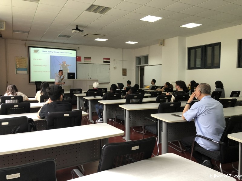 王老师以电影《泰坦尼克号》的剧照引出了本次安全知识讲座的主题。王老师从优先事项、救生设备、安全意识、船上纪律等方面为在场的留学生同学做了精彩的全英文安全知识讲座。王老师详细介绍了船上各种报警信号和装置以及救生衣、救生船等救生设备,重点介绍了火灾预防及逃生相关注意事项和安全知识。最后向留学生同学强调了航行实习期间的相关团组纪律和外事纪律。
